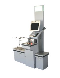 Este modelo de self-checkout traz como itens de série Monitor Touchscreen, Microcomputador, Sinalizador Luminoso, Móvel para Cesto e Móvel para Sacolas.