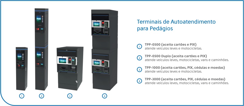 Com o terminal modelo TPP-0500 DUPLO, a solução atende tanto veículos de passeio como também veículos comerciais, como caminhões e veículos pesados.